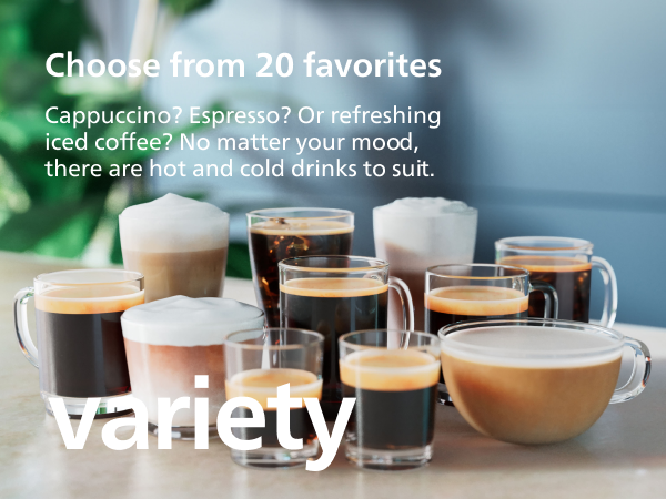 - Expanded drinks menus, with 20 hot and iced coffee presets – espresso, coffee, cappuccino, latte macchiato, iced coffee, Americano, caffè crema, caffè latte, travel mug, espresso lungo, ristretto, flat white, café au lait, iced latte, iced cappuccino, iced Americano, iced caffè crema, iced café au lait, iced caffè latte and iced espresso – and hot water and stand-alone milk froth options.